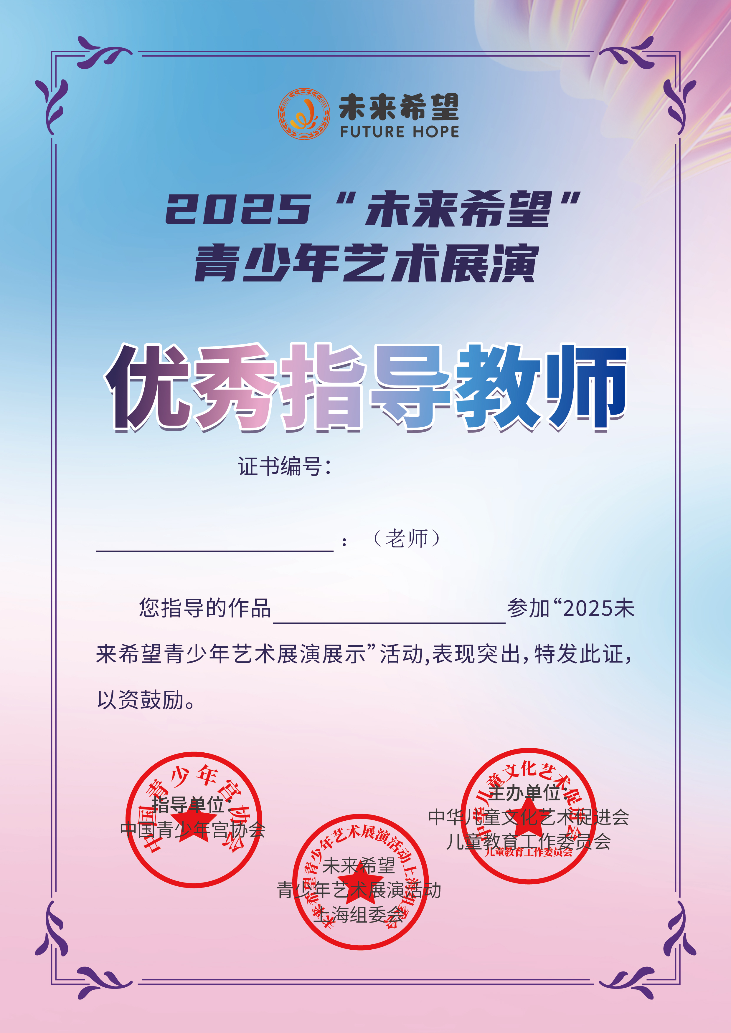 3.指导教师获得由中国青少年宫协会、中华儿童文化艺术促进会儿童教育工作委员会颁发的指导教师证书。