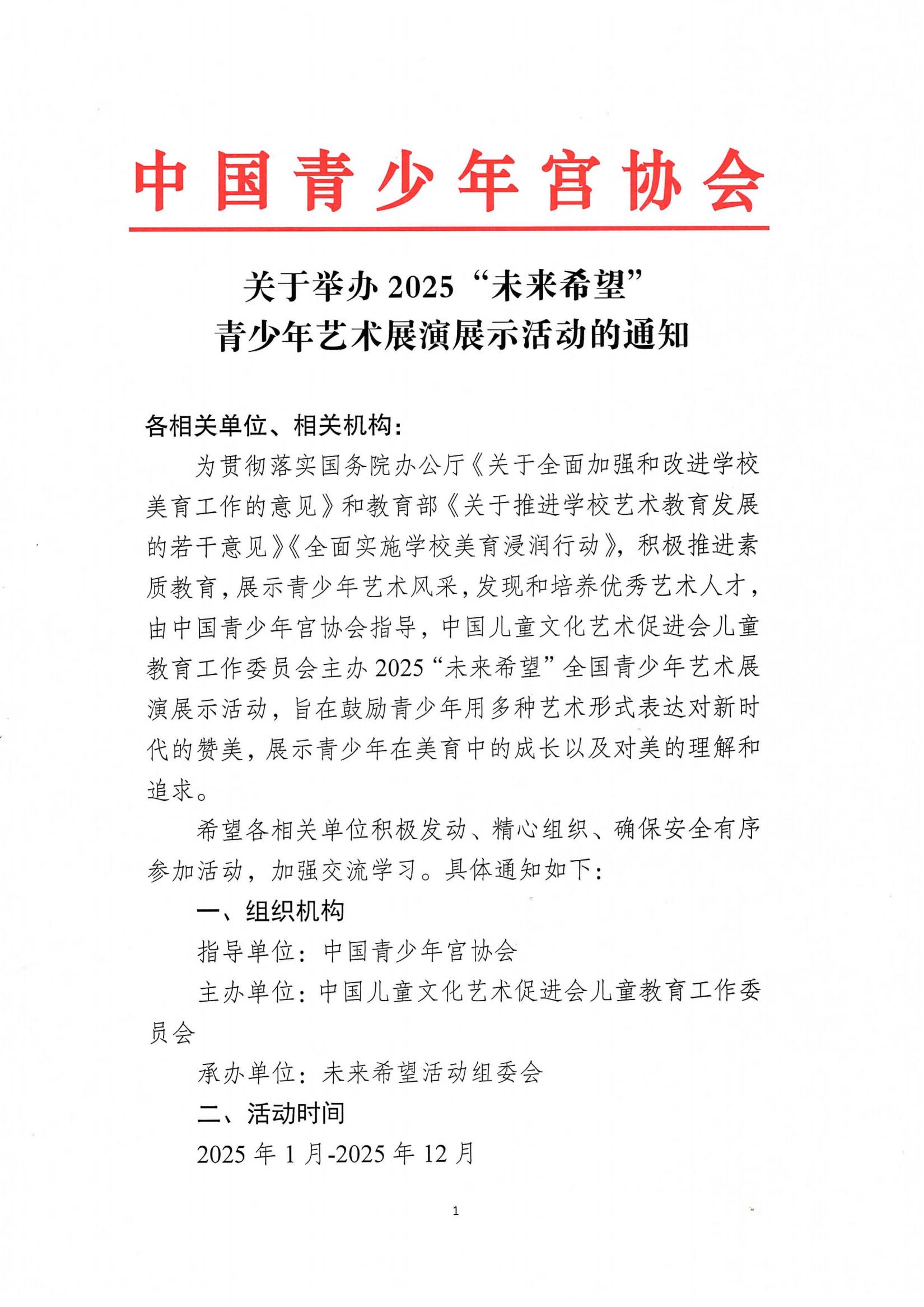 关于举办2025“未来希望” 青少年艺术展演展示活动的通知